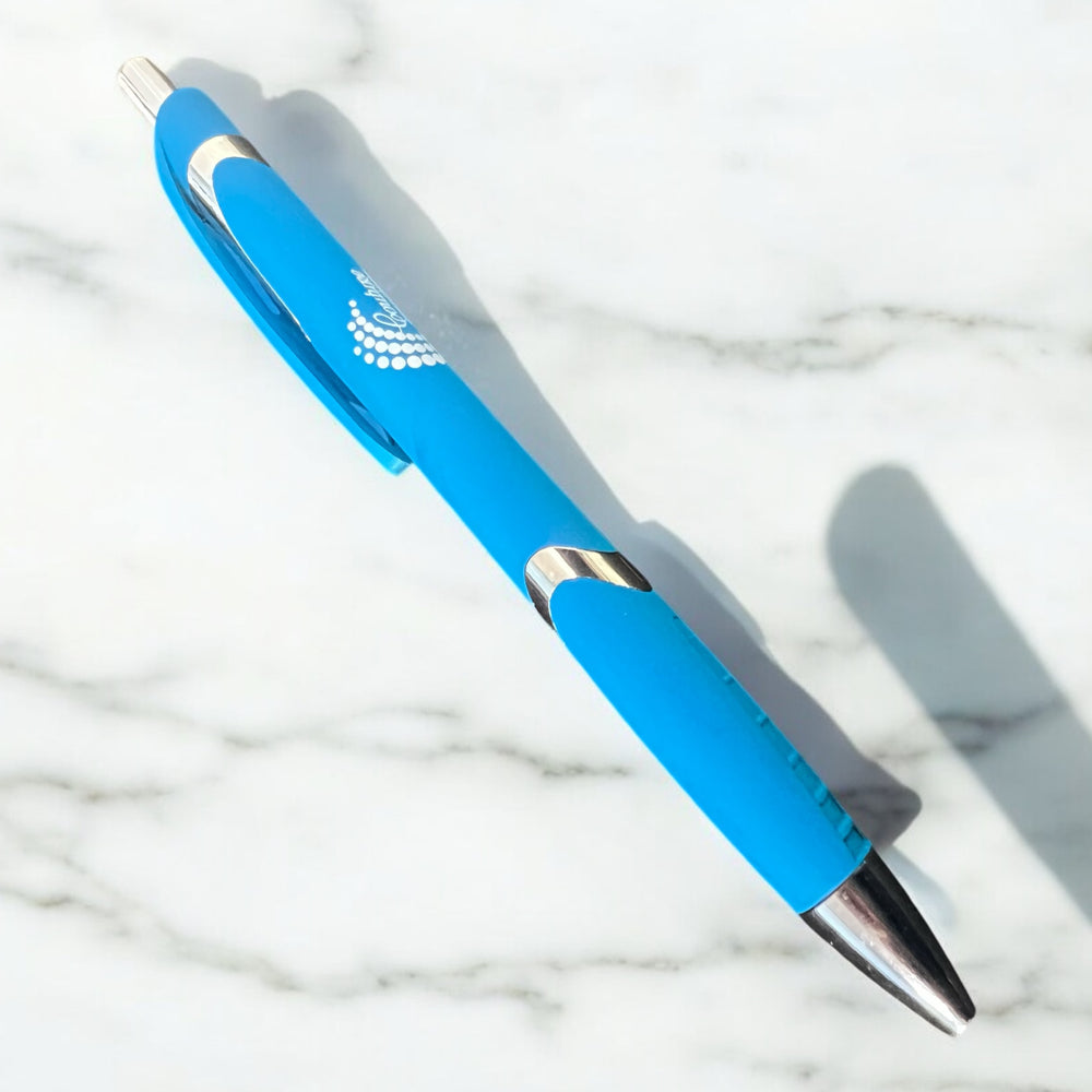 Couture Creations Stylus Pen with Blue Ink. With an appealing design and rubber grip, this personalised pen brings comfort as you write. The built-in stylus makes swiping through touchscreen devices easier and smudge-free.